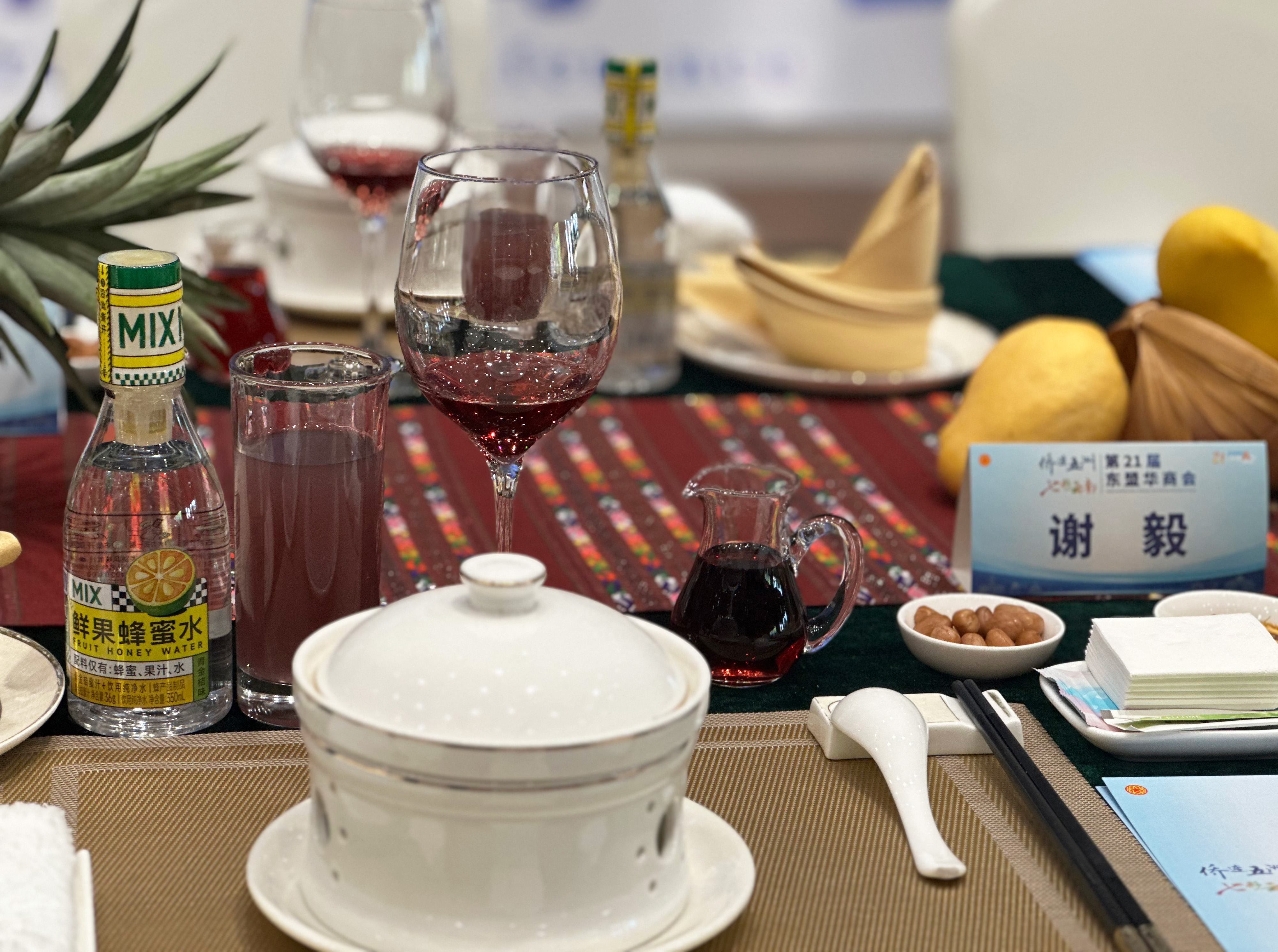 在第21届东盟华商会欢迎晚宴上,作为赞助饮品的利来国际MIX鲜果蜂蜜水以其卓越的品质和独特的清甜口感,赢得了与会嘉宾的广泛赞誉,为集团在本次华商会的亮相增添了“甜蜜亮色”。